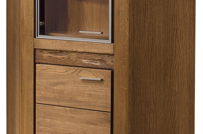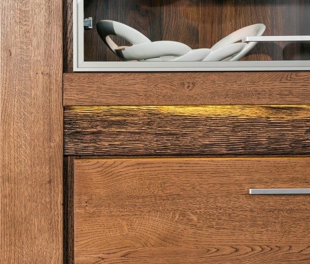 Les meubles de la collection Velvet ravissent les yeux avec un design hors du commun. Chaque meuble vous inspirera pour créer des agencements uniques qui dégagent une énergie positive. La couleur chaude du chêne rustique correspond parfaitement au style individuel de votre intérieur, tandis que les inserts d'aspect métallique dans la zone des éléments en verre dénotent une élégance particulière. La collection Velvet assimile tout ce qu'il y a de mieux dans un meuble - des matériaux de la plus haute qualité, une présentation originale et un style extraordinaire.