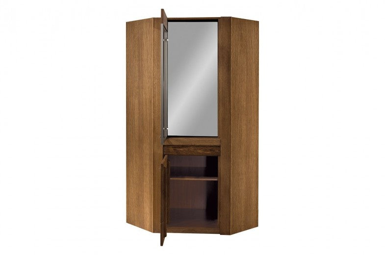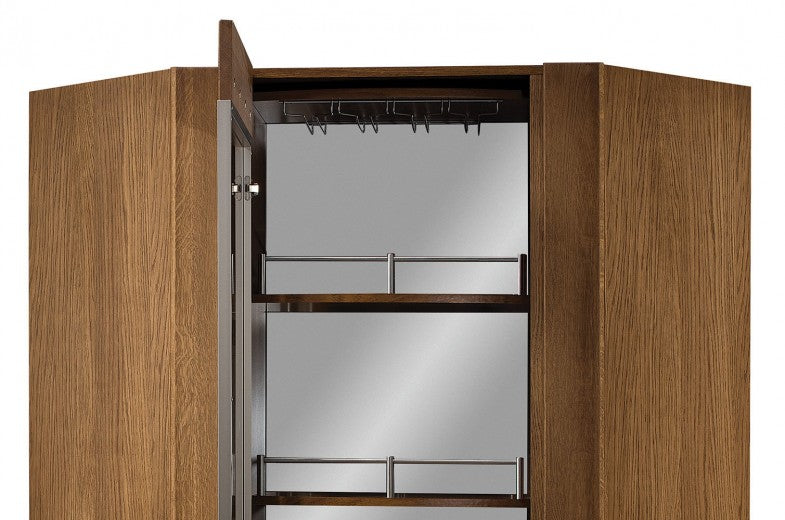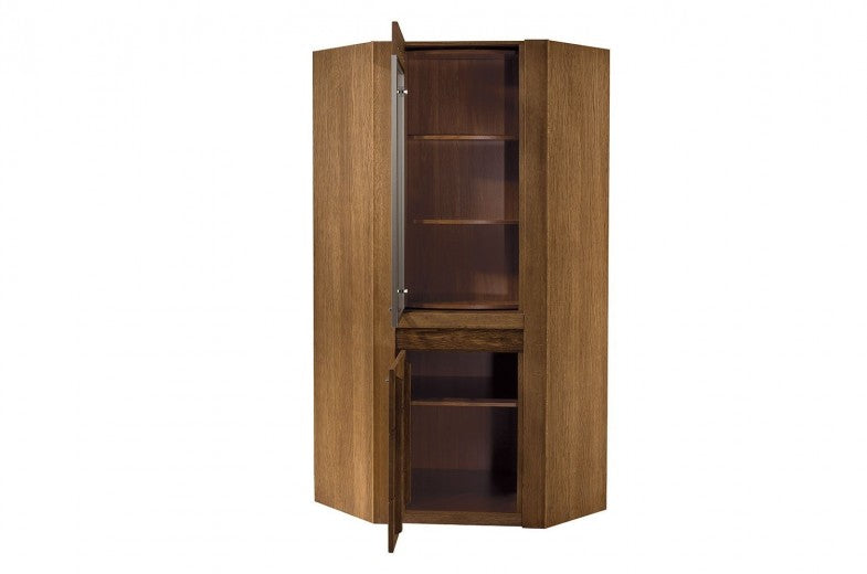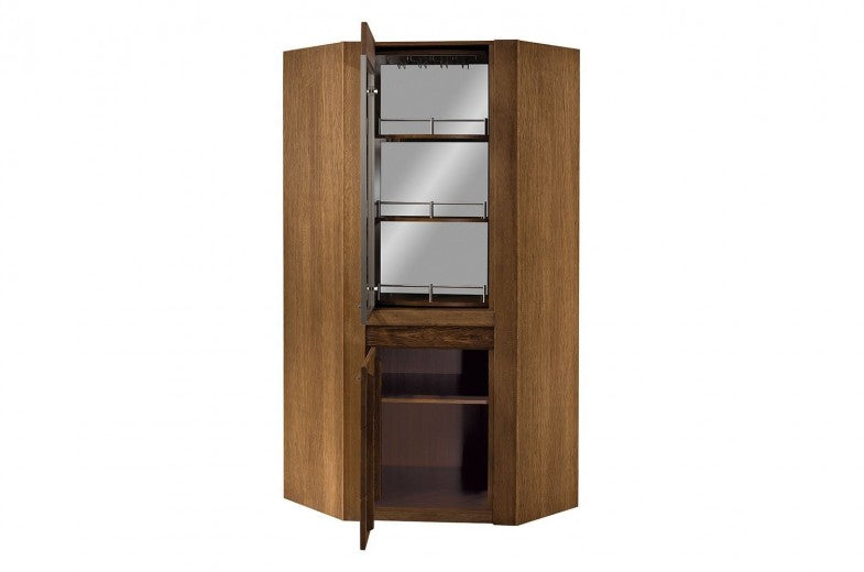 Vitrine d'angle en placage et palette, avec 2 portes et barre tournante Velvet 16 Chêne Rustique, l91xA91xH200 cm