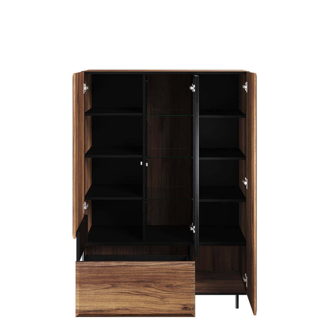 Vitrine en bois, avec 3 portes et 1 tiroir, Borga 05 Large, Chêne Catane / Noir, L100xW41xH143 cm