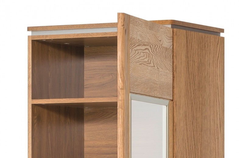 Vitrine en bois et placage, avec 1 porte et LED inclus Monténégro 11 Chêne Rustique, l58xA42xH198 cm