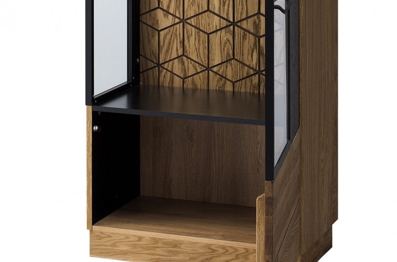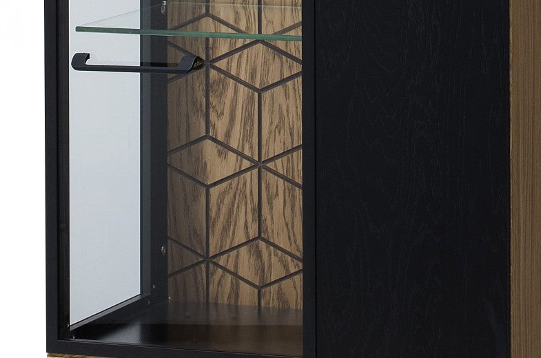 Vitrine en bois et placage, avec 1 porte et LED inclus Mosaic 11 Chêne / Noir, l67xA42xH196 cm