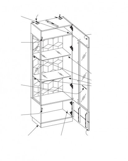 La porte de la vitrine s'ouvre sur le côté droit.