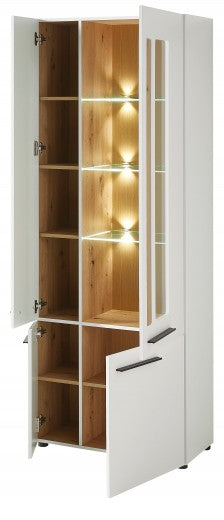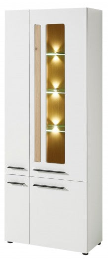 Vitrine en MDF, avec 4 portes et LED incluses Loftis Blanc / Chêne, l76xA37xH201 cm