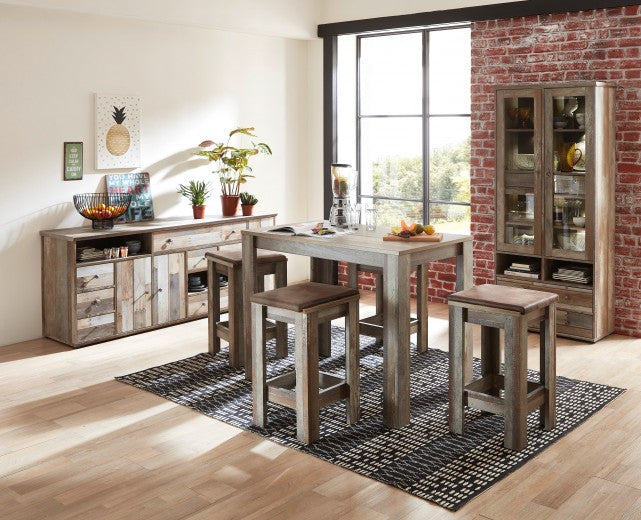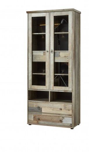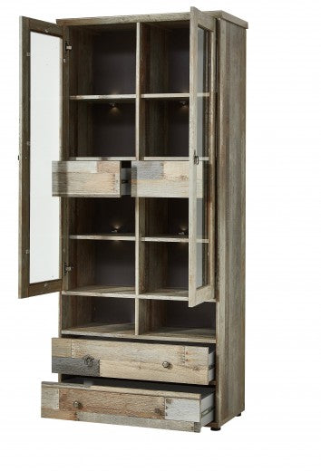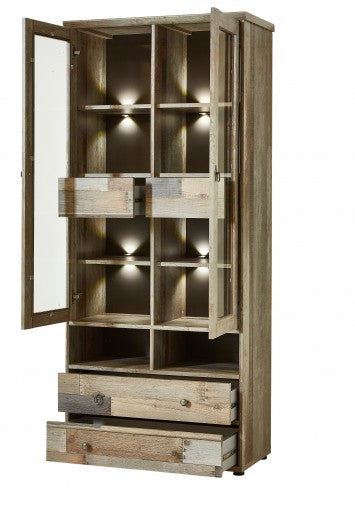 Vitrine palette 4 tiroirs, 2 portes et LED incluses Bazna Natur / Gris foncé, l83xA39xH188 cm