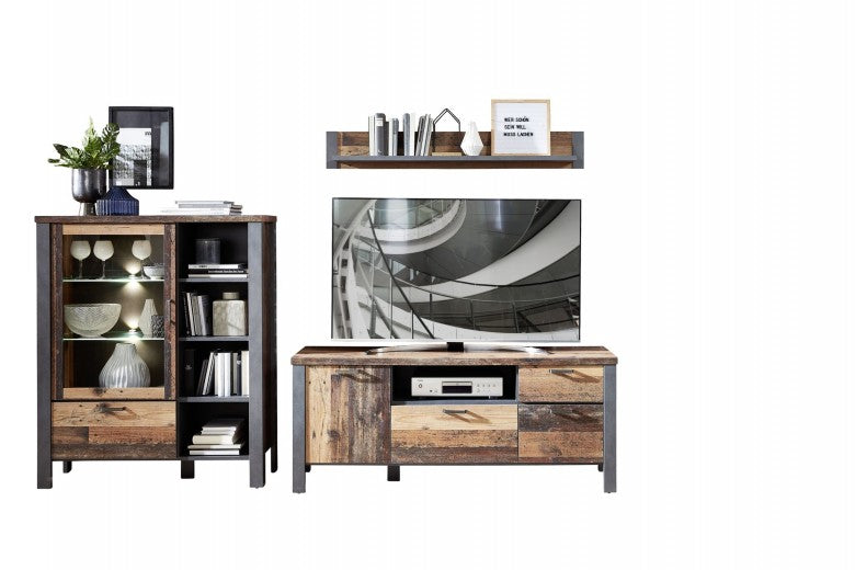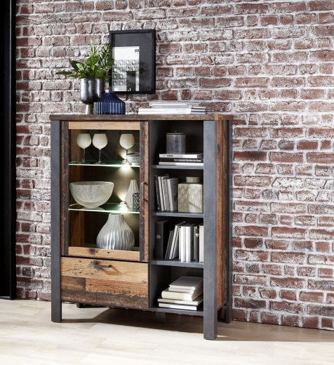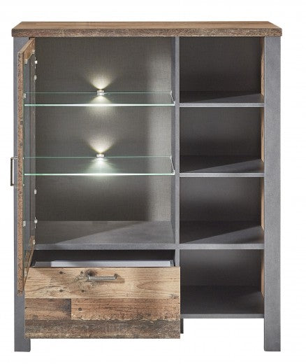 Vitrine palette, avec 1 porte et 1 tiroir Chelsea Small Naturel / Graphite, l109xA40xH129 cm