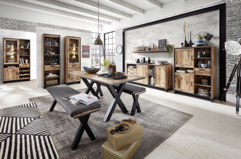 Vitrine palette avec 1 tiroir, 2 portes et LED inclus Pato Big Natural / Graphite, l60xA38xH203 cm