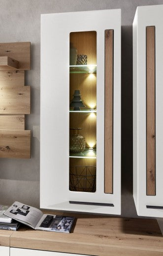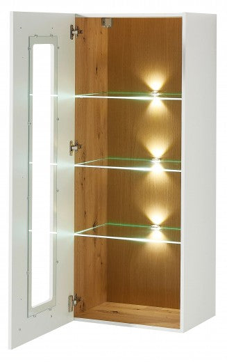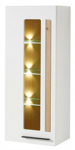 Vitrine suspendue en MDF, avec 1 porte et LED incluses Loftis Blanc / Chêne, l52xA37xH128 cm